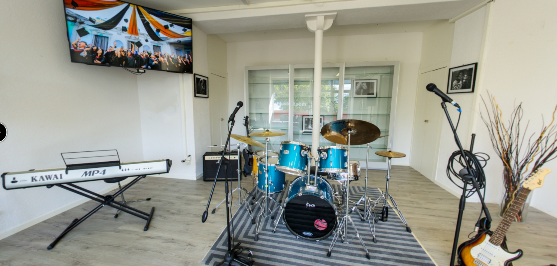 音乐室配备专业音响设备及各类乐器,无论是校乐队排练,还是好友相约开展即兴演奏,均可随时供大家使用。